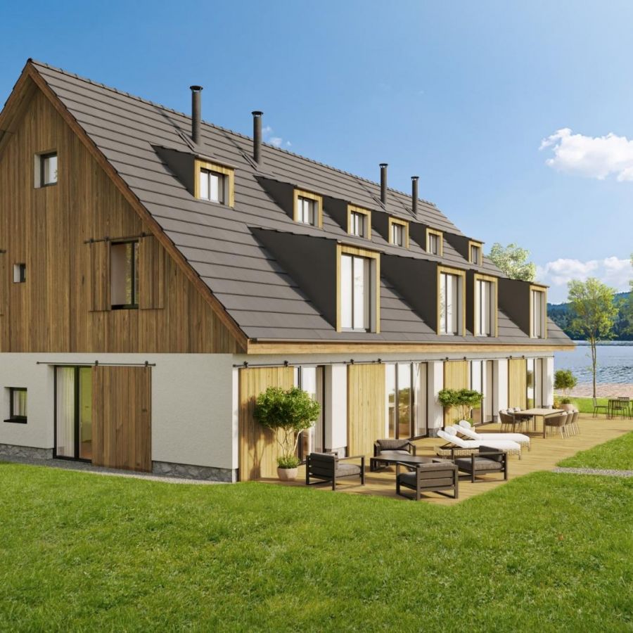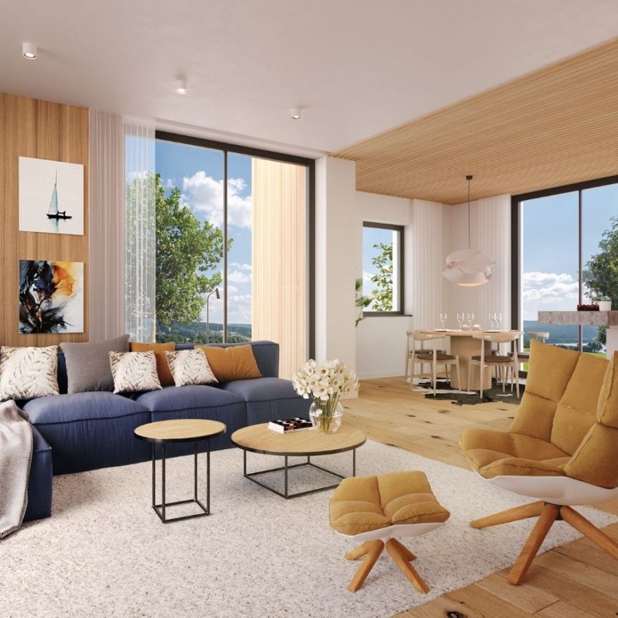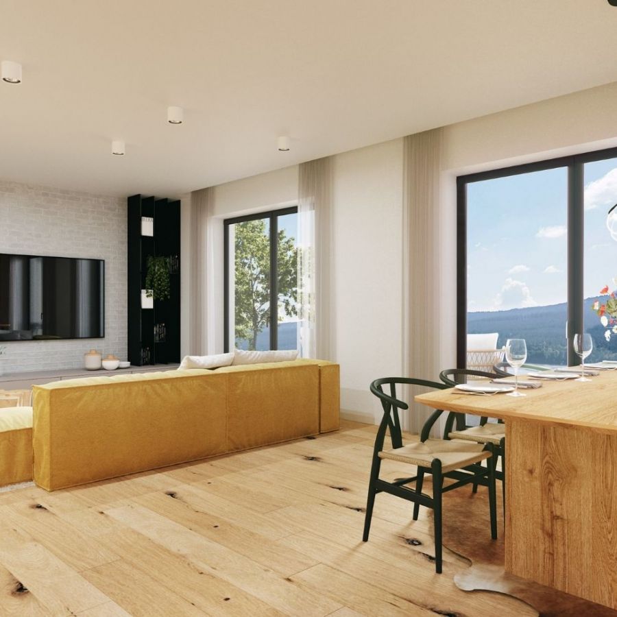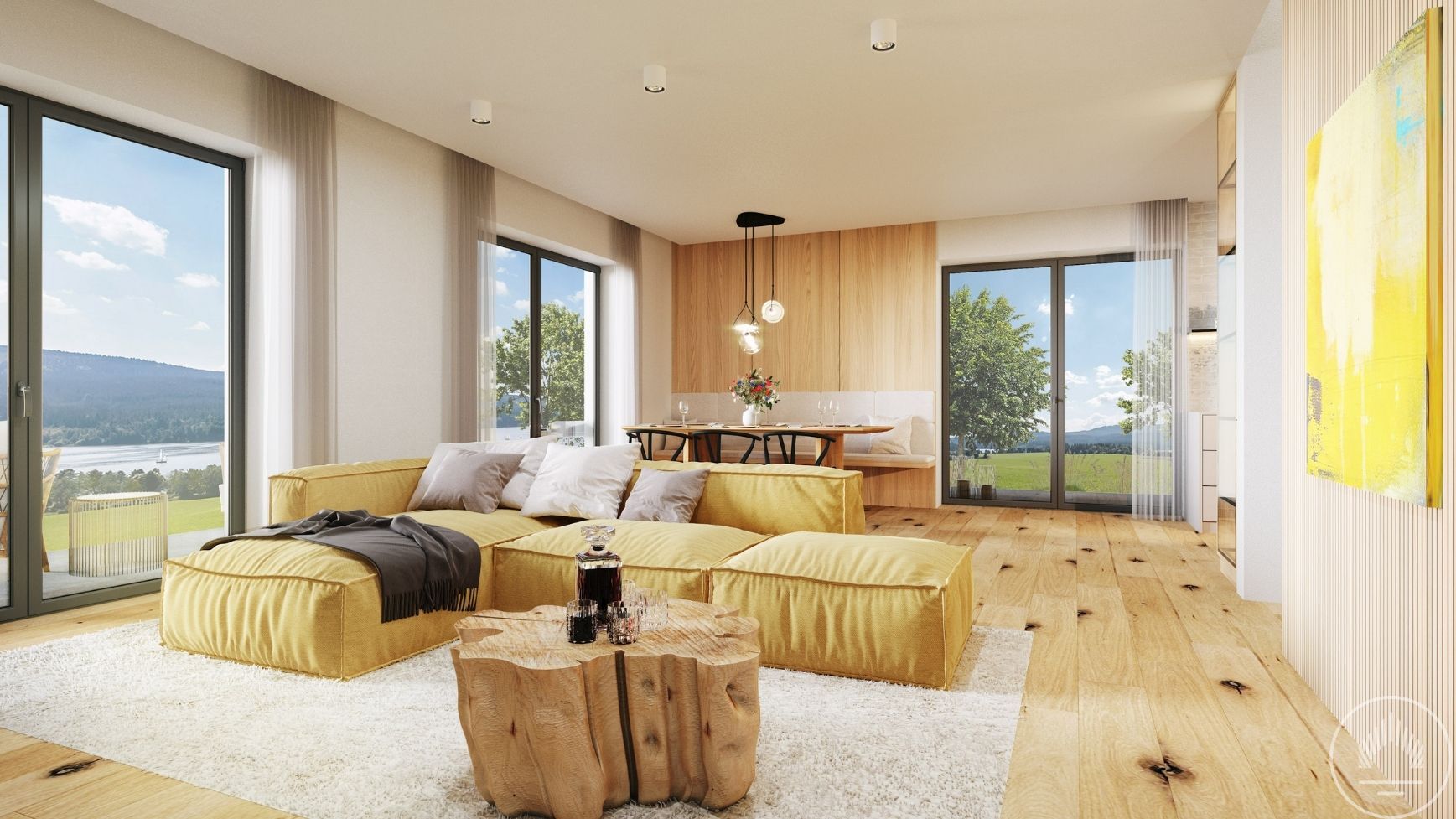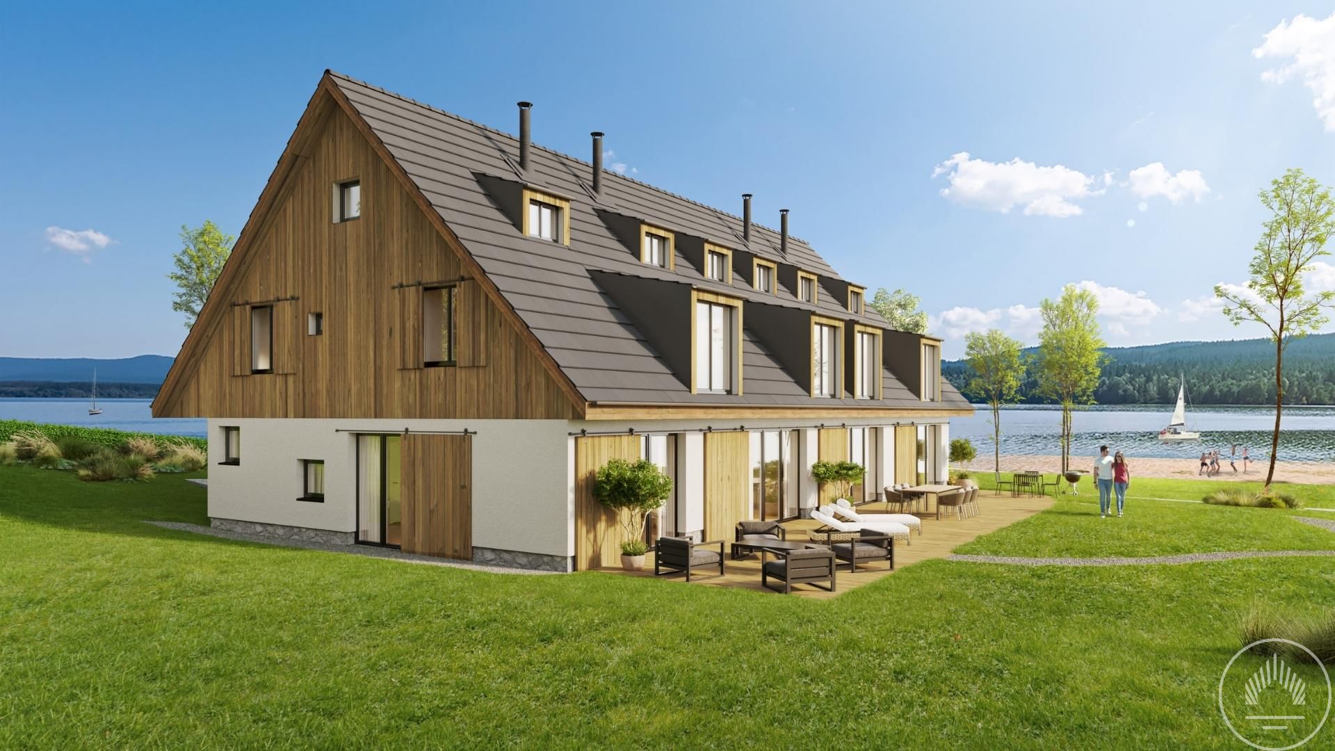Funkčně a velkoryse řešené apartmány různých dispozic od 46 do 136 m2 nabídnou budoucím majitelům komfort a pohodlí s úchvatným výhledem na jezero nebo šumavskou krajinu. Každý apartmán má vlastní parkovací místo, sklep nebo balkon. Nižší apartmány nabízejí posezení s rodinou nebo přáteli v útulné soukromé zahradě.