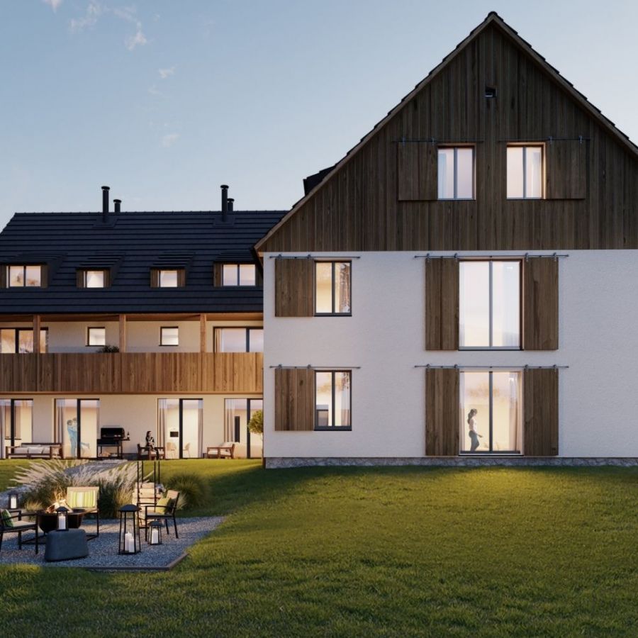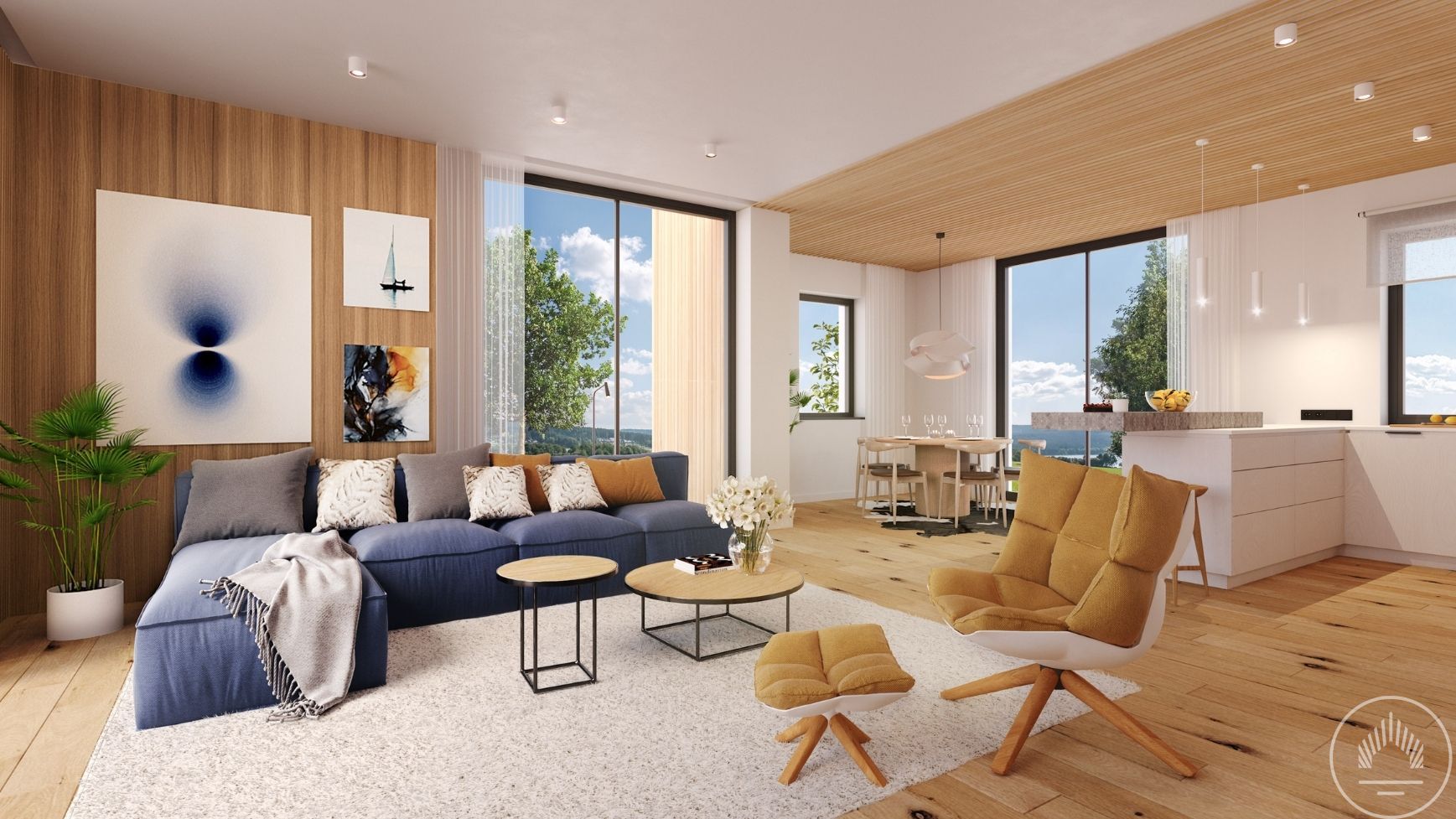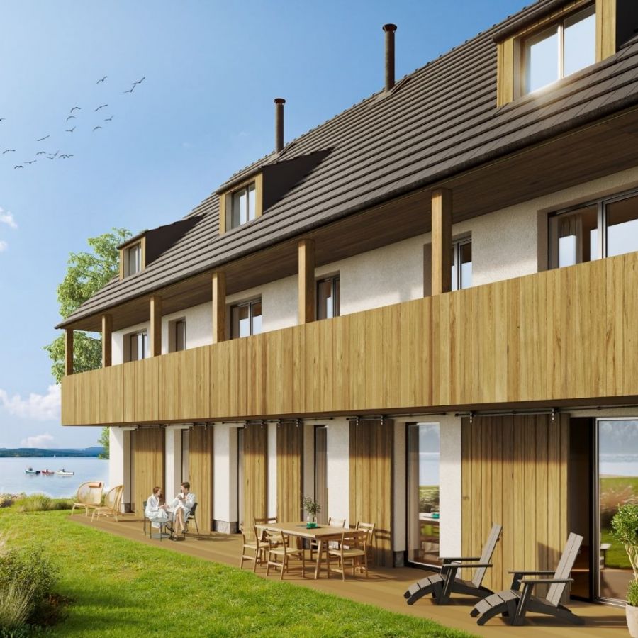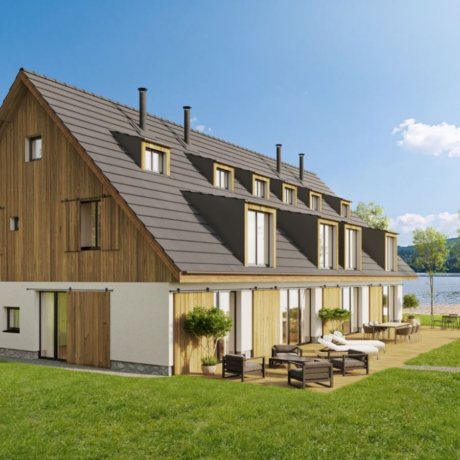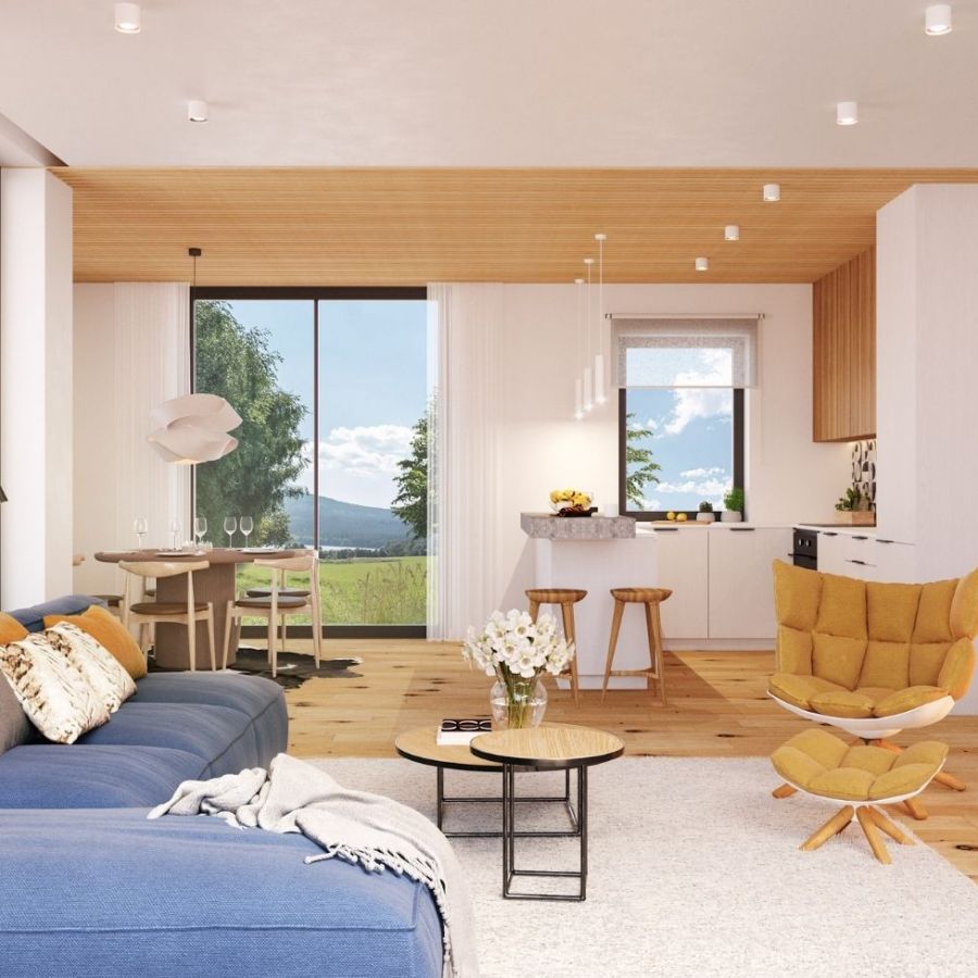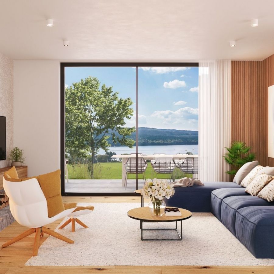 Funkčně a velkoryse řešené apartmány různých dispozic od 46 do 136 m2 nabídnou budoucím majitelům komfort a pohodlí s úchvatným výhledem na jezero nebo šumavskou krajinu. Každý apartmán má vlastní parkovací místo, sklep nebo balkon. Nižší apartmány nabízejí posezení s rodinou nebo přáteli v útulné soukromé zahradě.