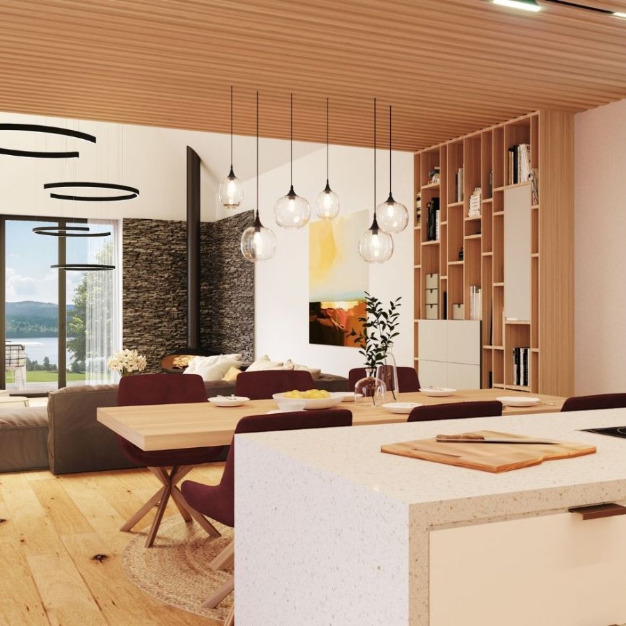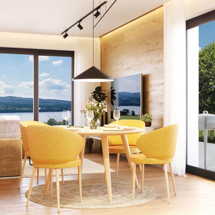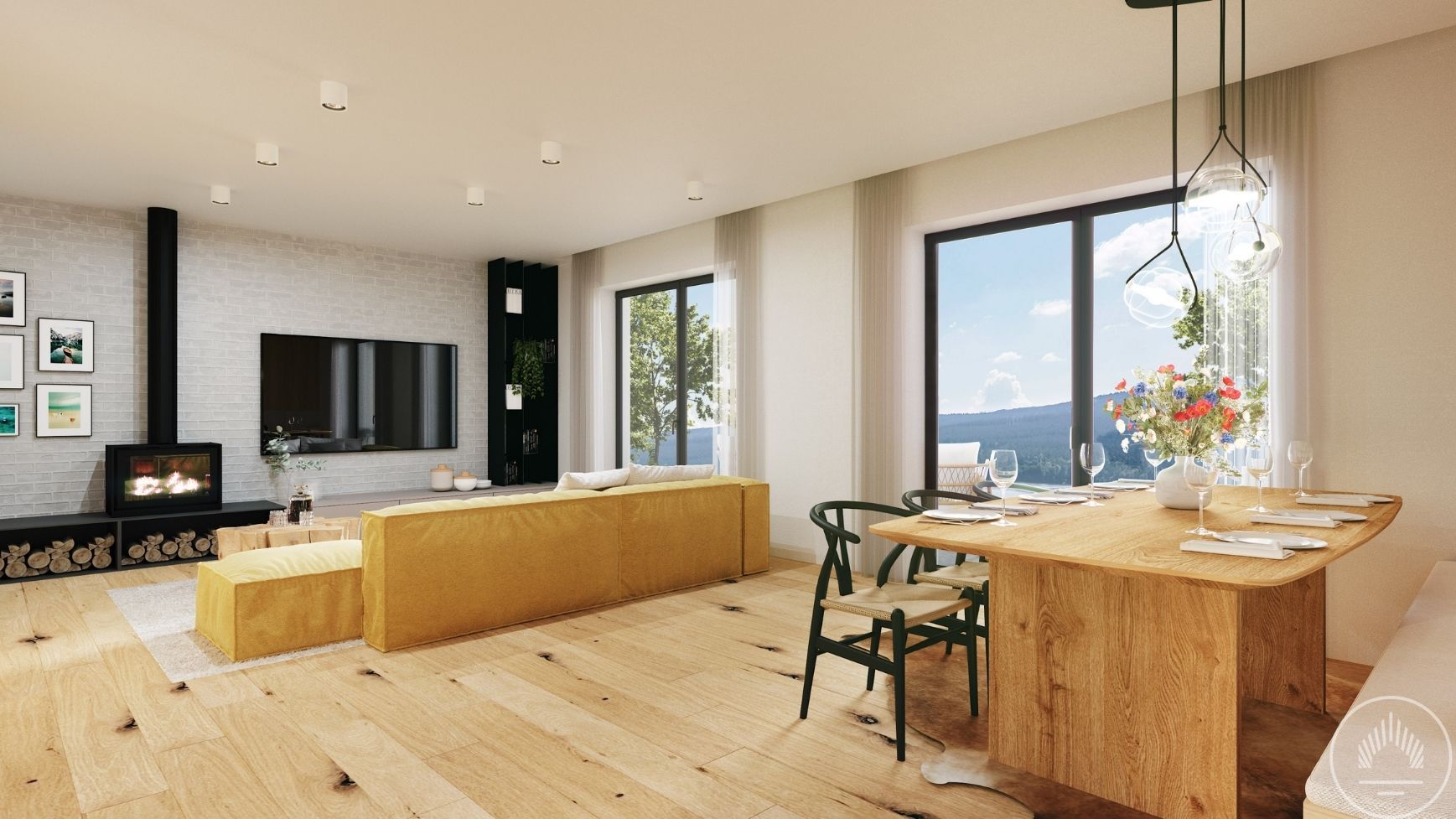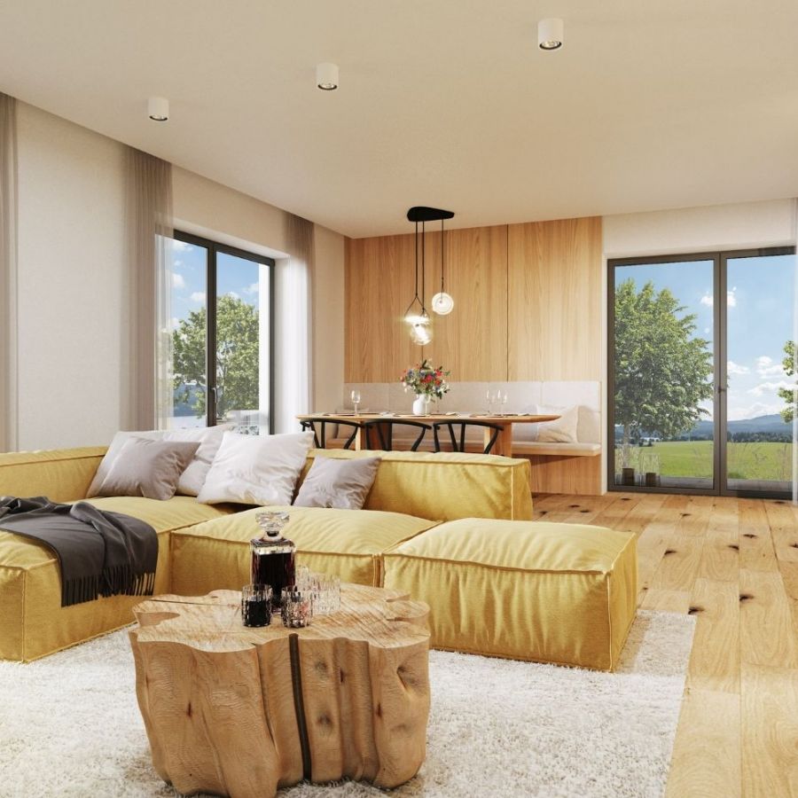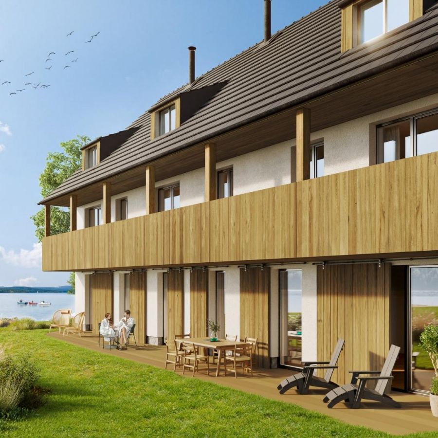 Funkčně a velkoryse řešené apartmány různých dispozic od 46 do 136 m2 nabídnou budoucím majitelům komfort a pohodlí s úchvatným výhledem na jezero nebo šumavskou krajinu. Každý apartmán má vlastní parkovací místo, sklep nebo balkon. Nižší apartmány nabízejí posezení s rodinou nebo přáteli v útulné soukromé zahradě.