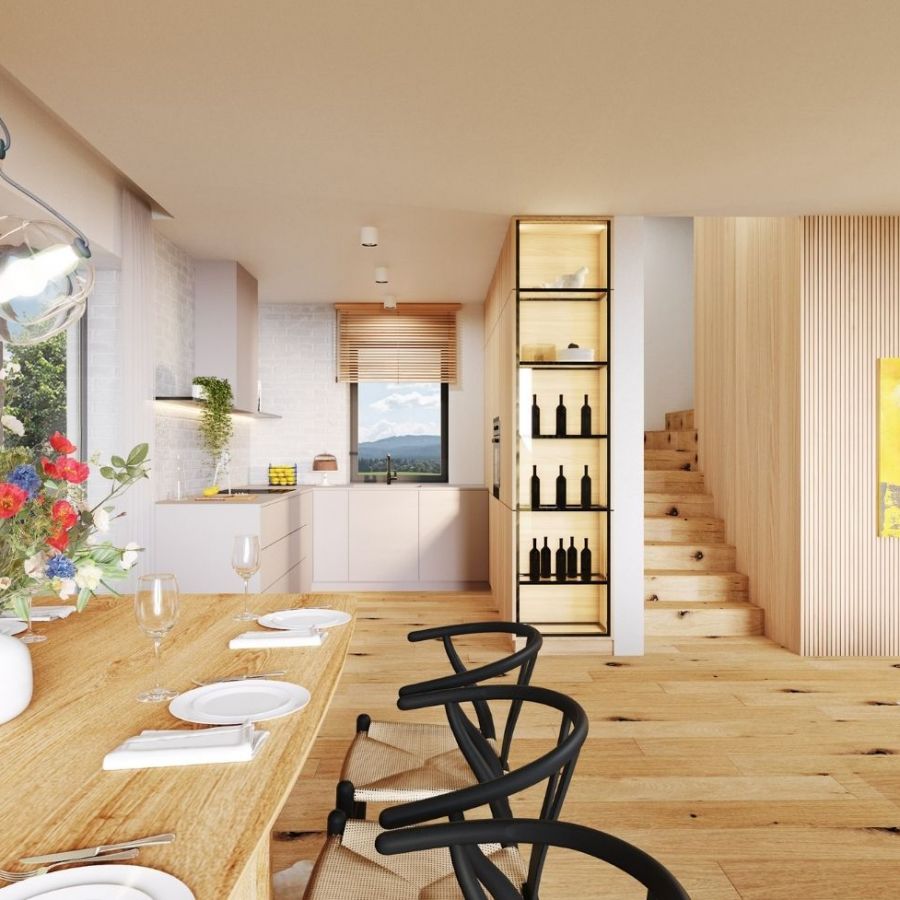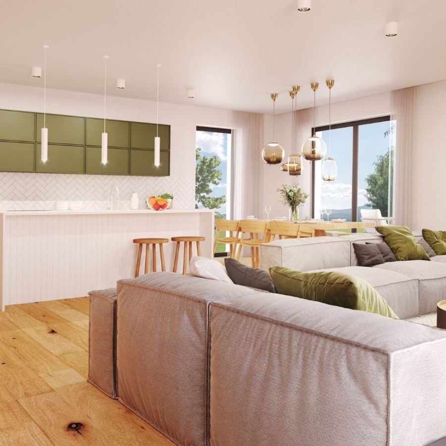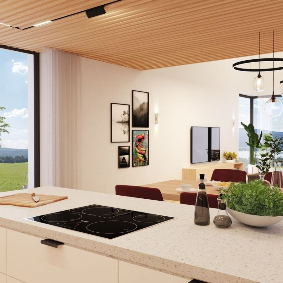 Všechny apartmány jsou postaveny na klíč, vybaveny inteligentním vytápěním. Na přání lze dům zařídit podle Vašich představ.